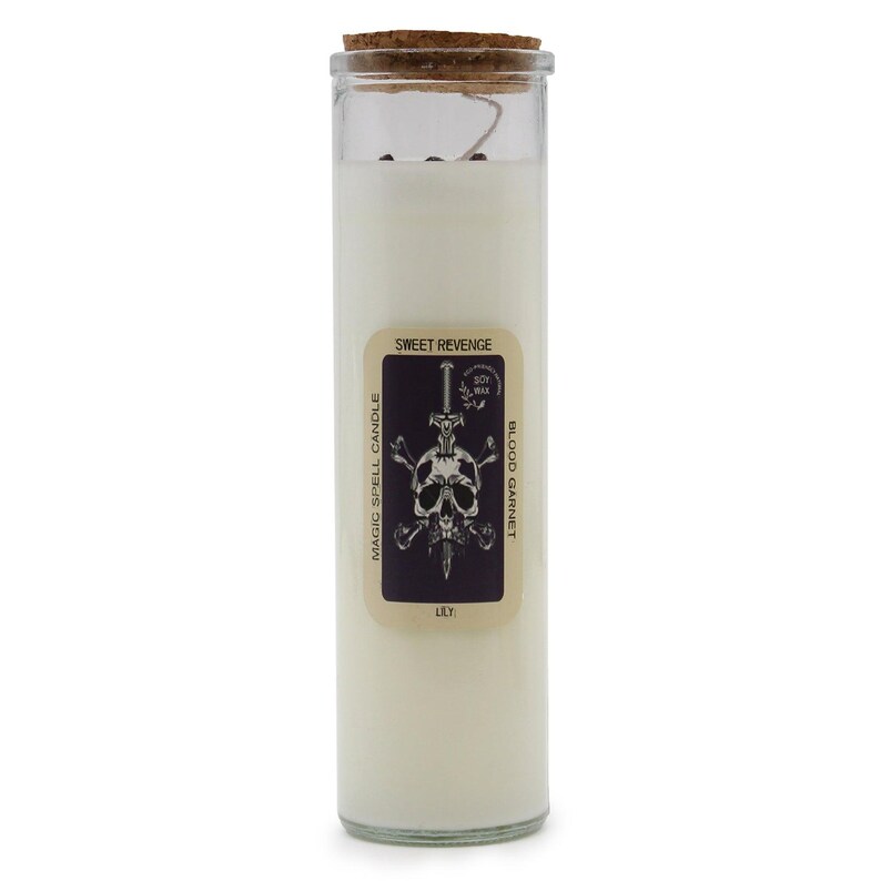 This candle is to channel the energies of justice, empowerment, and the manifestation of retribution. To help you reclaim your power, overcome adversity, and restore balance to unjust situations. Embedded within the candle, you will discover genuine Blood garnet, known as a stone of justice and empowerment, promoting strength, courage, and the manifestation of rightful outcomes. The alluring scent of lily, known for its empowering and transformative properties, will fill the air, creating an ambience that stimulates inner strength, confidence, and determination.